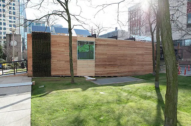 This house is BC Hydro’s concept for the next generation of homes focused on sustainability and eco-friendliness. Its notable features include recycled shipping containers for structure, pine beetle wood & cedar for exterior cladding, a “green wall” for insulation, and solar panels for collecting clean, renewable energy from the sun.