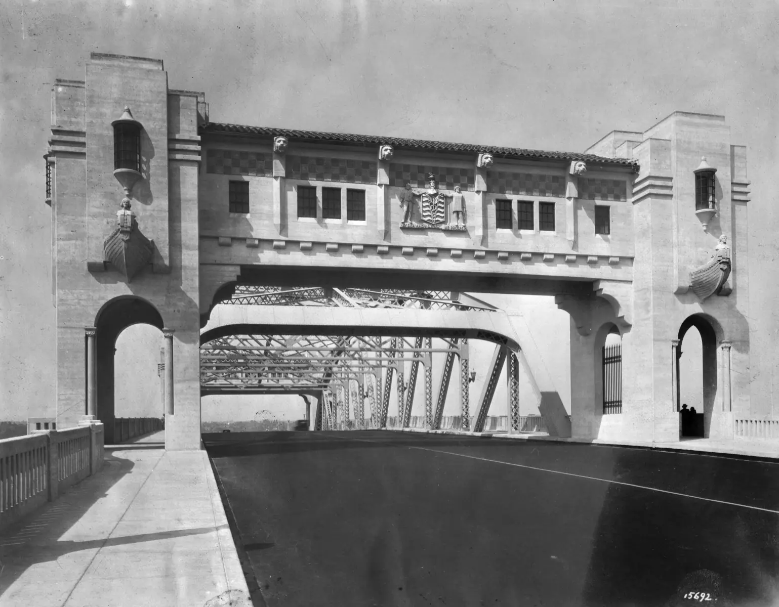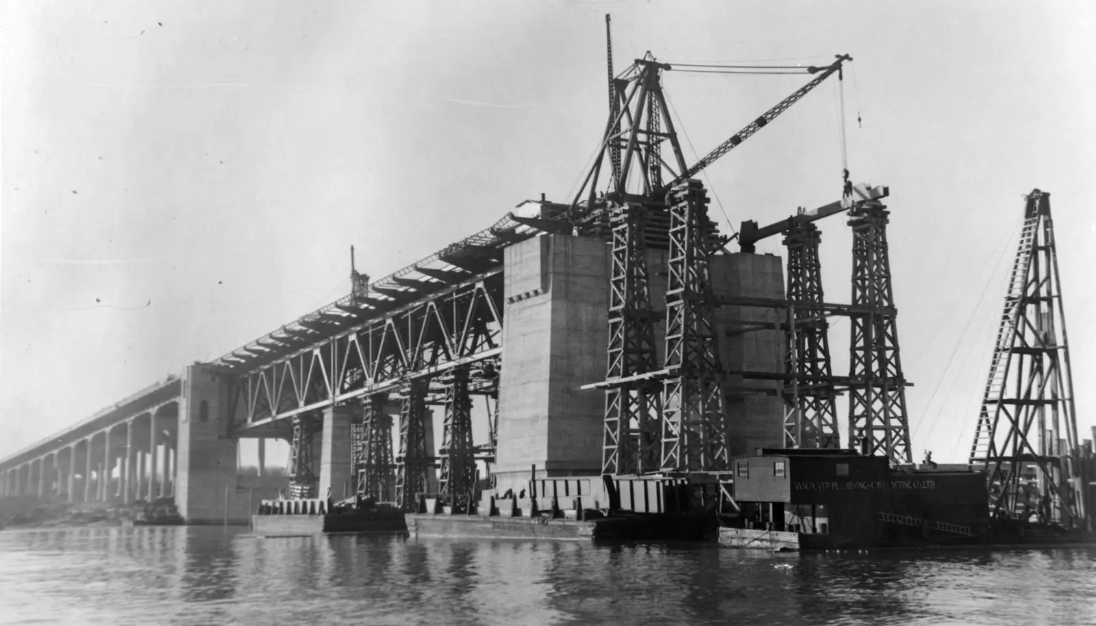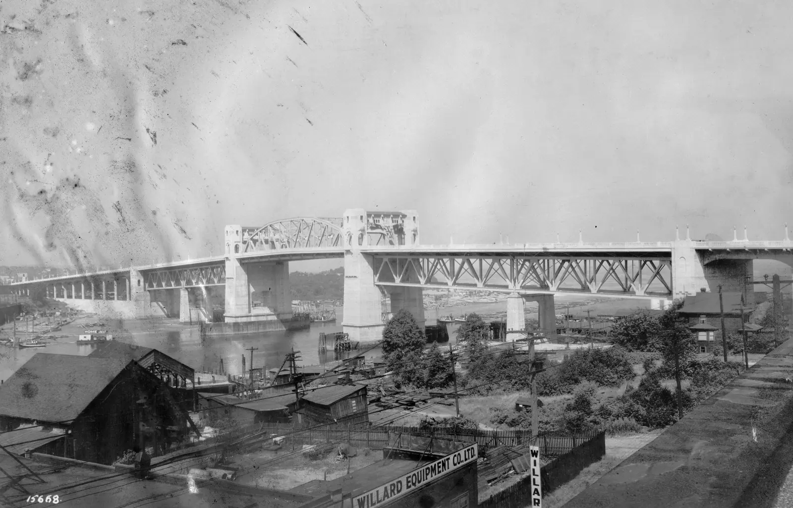 HKM completed Burrard Street Bridge, the oldest surviving of Vancouver’s bridges. The design includes distinctive piers and galleries to mask the rigid centre steel construction.