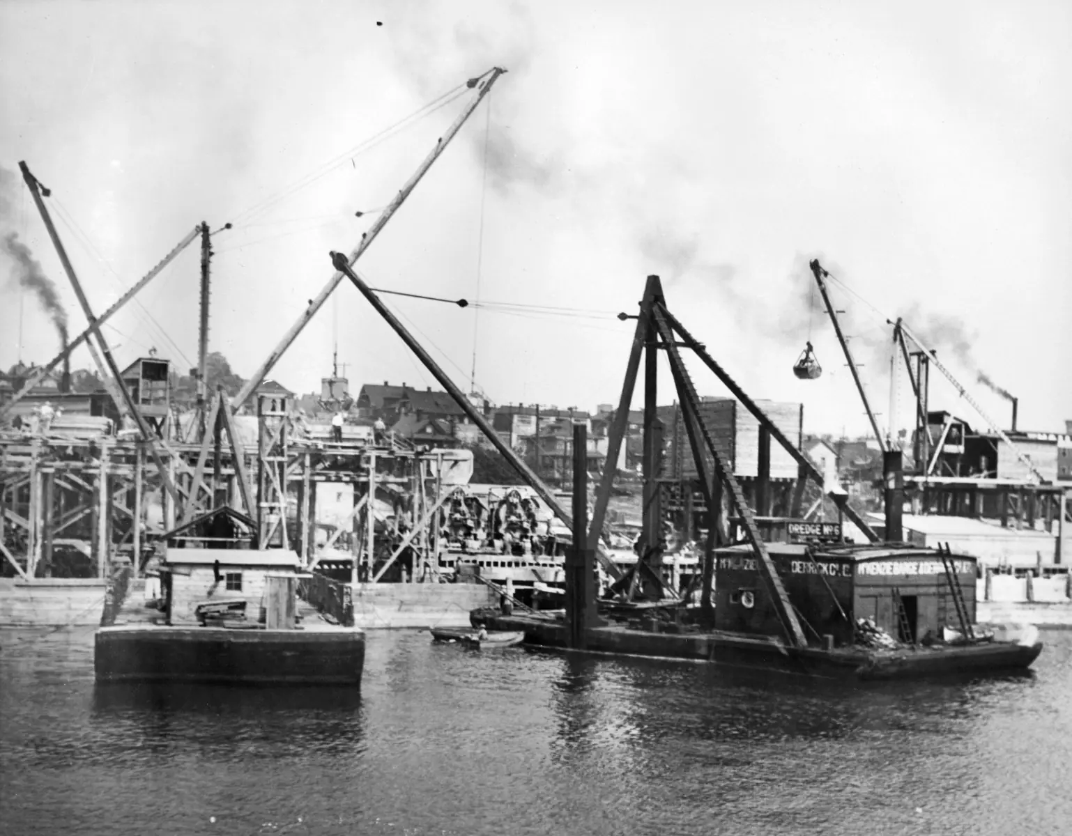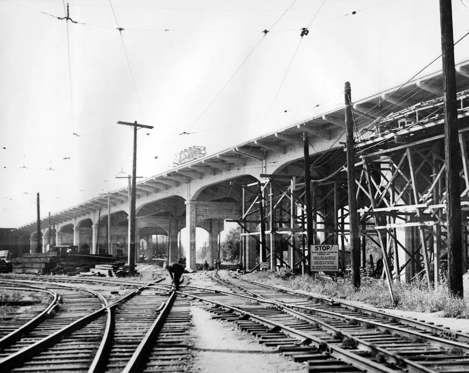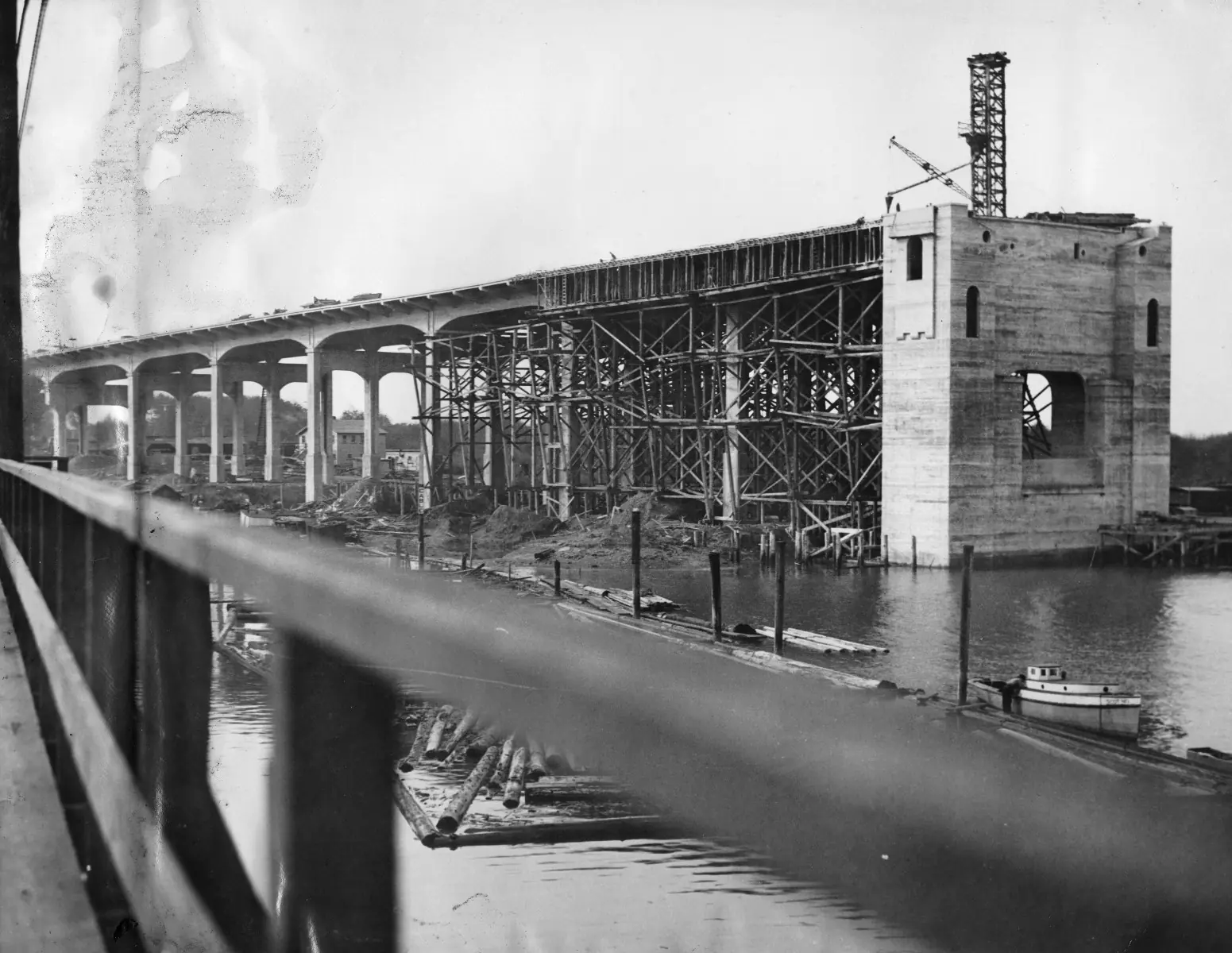 HKM completed Burrard Street Bridge, the oldest surviving of Vancouver’s bridges. The design includes distinctive piers and galleries to mask the rigid centre steel construction.