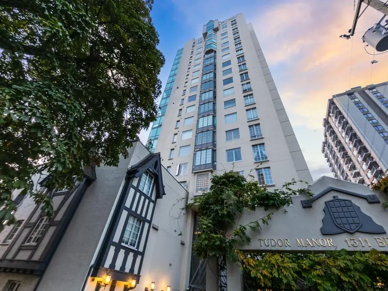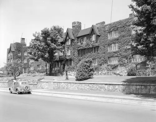 Like many of Hodgson, King & Marble Ltd., Tudor Manor is still part of Vancouver’s Architectural history. Prominently located near the beach, Tudor Manor was built as a three-storey apartment building in 1927-1928, designed by Townley and Matheson. Its half-timber decoration, turrets, and massing are characteristic of Tudor Revival architecture.